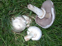 Agaricus “barficus” complex, (A. xanthodermus and A. californicus),“Meadow Mushrooms” that stain yellow, smell like phenol. Common cause of unpleasant but usually self-limiting mushroom poisoning. Toxins unknown. Rapid onset of gastrointestinal symptoms. Toxic Agaricus species are common in lawns and in landscaping, and therefore tempting to novice hunters. The toxic species are grossly similar to store-bought button mushrooms and several wild and edible Agaricus species.